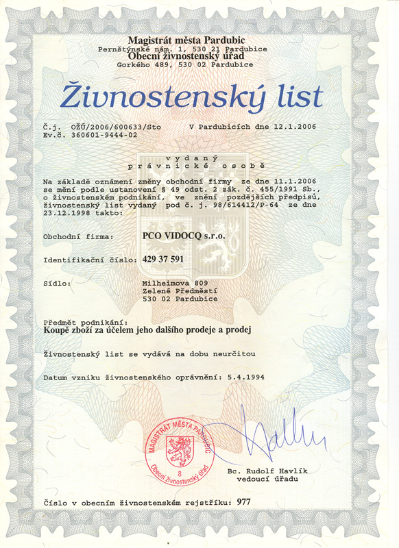 | Montáž, údržba a servis telekomunikačních zařízení | živnostenský list |